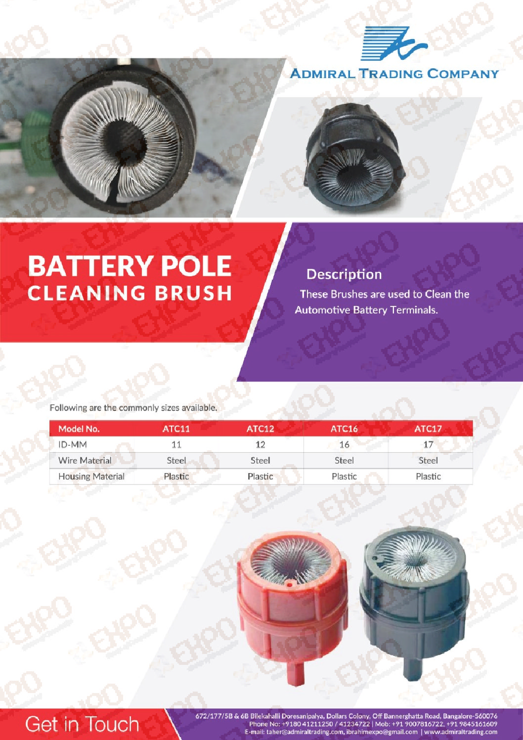 These Brushes are used to Clean the Automotive Battery Terminals. Battery Pole Cleaning Brush Suppliers in Bangalore, Kolkata – Expo Groups. Expo Groups stands as the premier provider of battery pole cleaning brushes, catering to the demanding needs of industries in Bangalore and Kolkata. Our high-quality brushes ensure thorough and efficient cleaning, extending the life and performance of your batteries. With a commitment to excellence, Expo Groups delivers reliable solutions that meet industry standards.